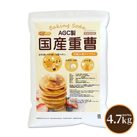 AGC製 重曹 4.7kg【送料無料(沖縄を除く)】 食品添加物 国産重曹 お料理・掃除・洗濯・料理・消臭に♪環境に優しく人にも無害 サラサラで使いやすい♪ エコ ECO♪ NICHIGA(ニチガ) TK1