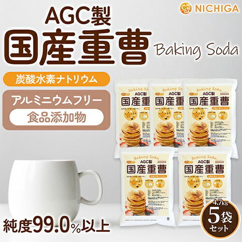 AGC製 重曹 4.7kg×5袋 【送料無料!(北海道・九州・沖縄を除く)・同梱不可】 食品添加物 国産重曹 お料理・掃除・洗濯・料理・消臭に!環境に優しく人にも無害 サラサラで使いやすい♪ 小分けで便利 NICHIGA(ニチガ) TKJ