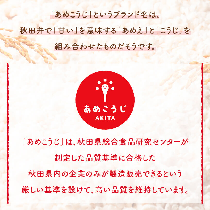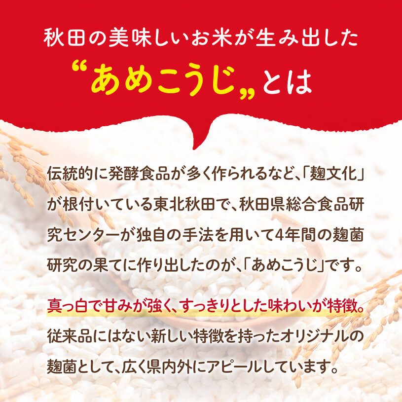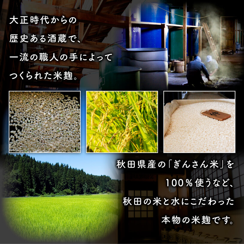 美酒爛漫を製造している秋田銘醸社にて製造された麹菌「あめこうじ(CK33n菌)」で作った米麹です。