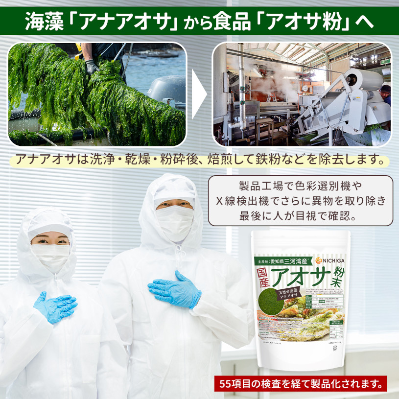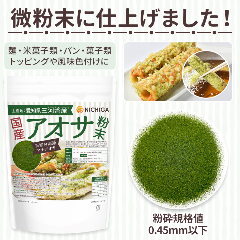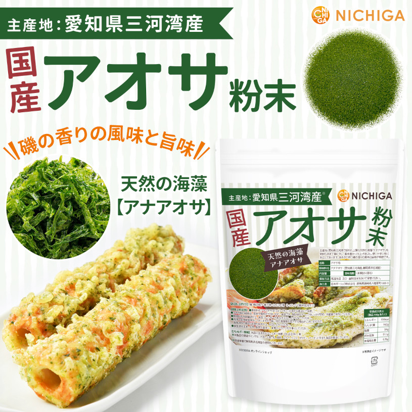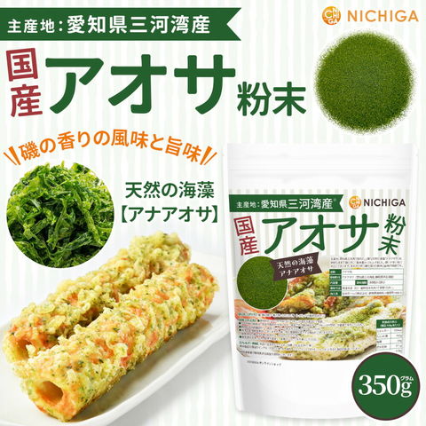 国産アオサ粉末 350g 【送料無料】【メール便で郵便ポストにお届け】【代引不可】【時間指定不可】 天然の海藻 アナアオサ [主産地:愛知県三河湾産] 磯の香りの風味と旨味 [05] NICHIGA(ニチガ)