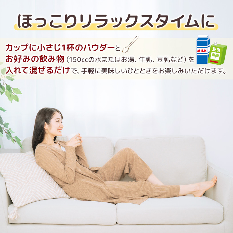 お湯や牛乳に溶かして飲むほか、スムージーやお菓子に混ぜて利用できます。 豊富な栄養価を楽しみながら、様々な料理に活用できます。 |