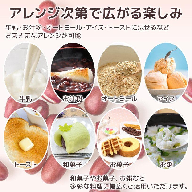 牛乳やヨーグルトに混ぜるほか、お菓子や和菓子、お粥など多彩な料理にも幅広くご活用いただけます。