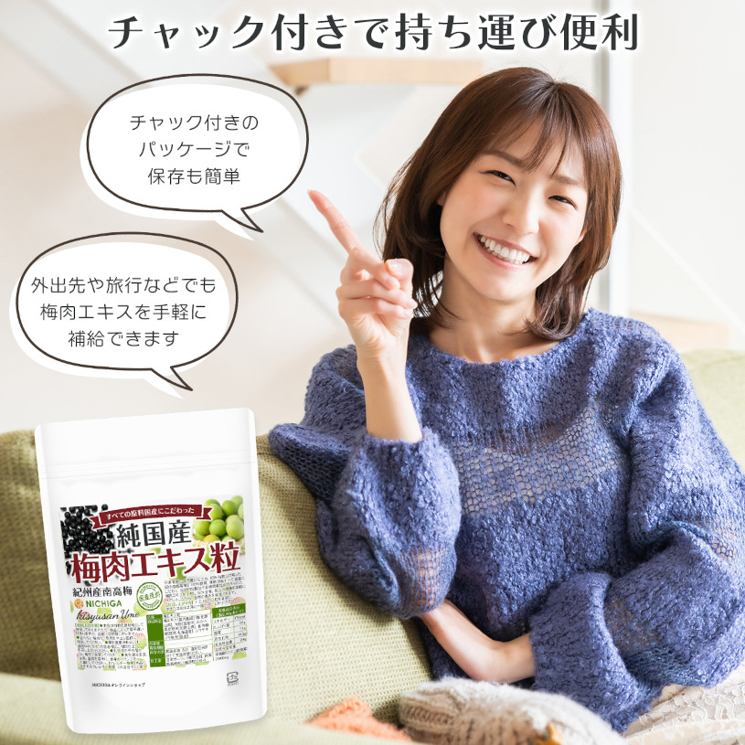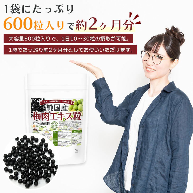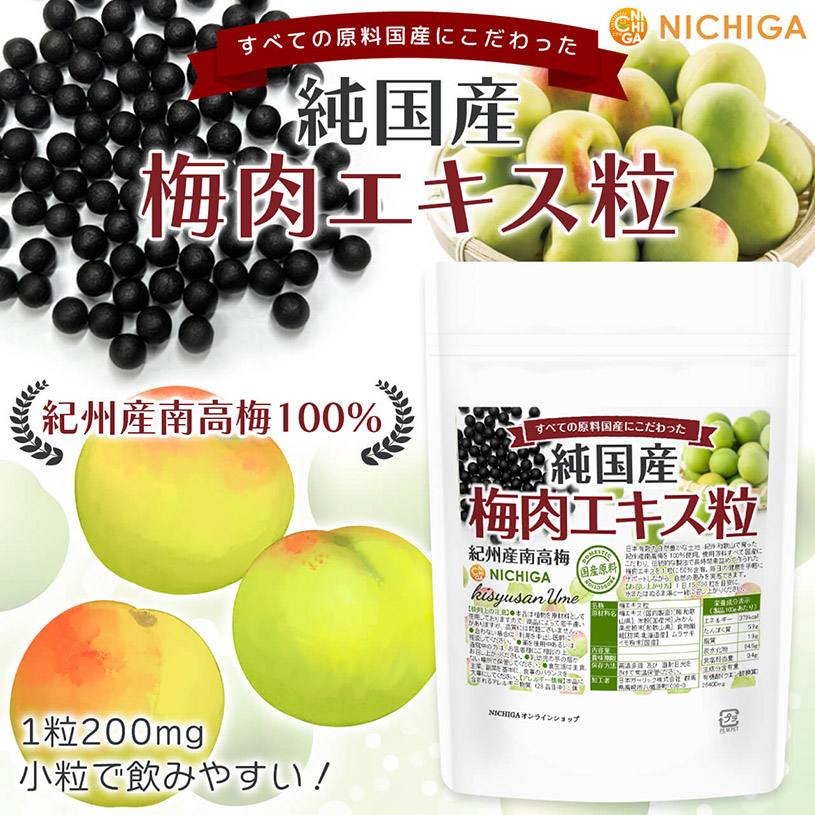 純国産 梅肉エキス粒 120g【送料無料】【メール便で郵便ポストにお届け】【代引不可】【時間指定不可】紀州産南高梅100% すべての原料国産にこだわった 飲みやすい粒タイプ 約600粒 梅エキス [05] NICHIGA(ニチガ)