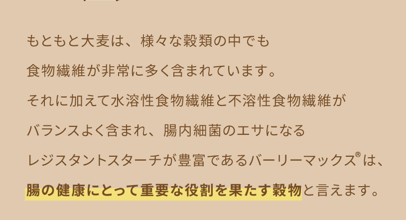 【スーパー大麦 バーリーマックス® 腸の奥まで届く天然食物繊維】