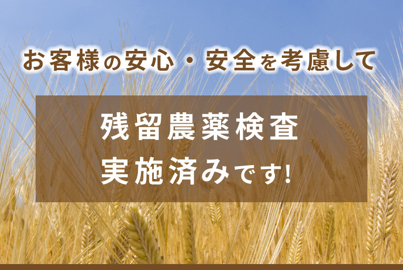 | 残留農薬 | 食品衛生法に準拠した方法にて実施済み 合格した原料を使用しています。 |