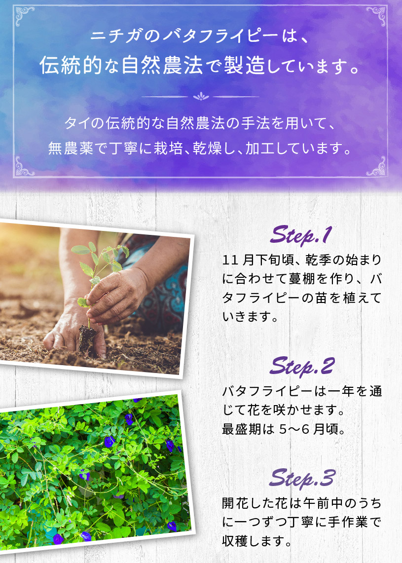 | 原材料名 | バタフライピー(リーフ) |