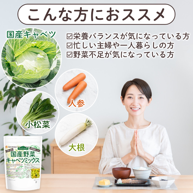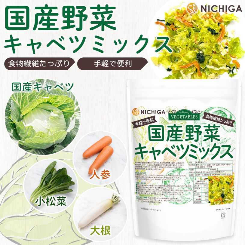 | 原材料名 | 野菜(キャベツ(国産)、人参(国産)、小松菜(国産)、大根(国産))、ブドウ糖 |