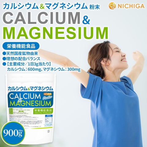 カルシウム&マグネシウム 粉末 900g 【送料無料】【メール便で郵便ポストにお届け】【代引不可】【時間指定不可】 栄養機能食品 2:1 理想の配合バランス 骨や歯の形成に必要な栄養素 [01] NICHIGA(ニチガ)