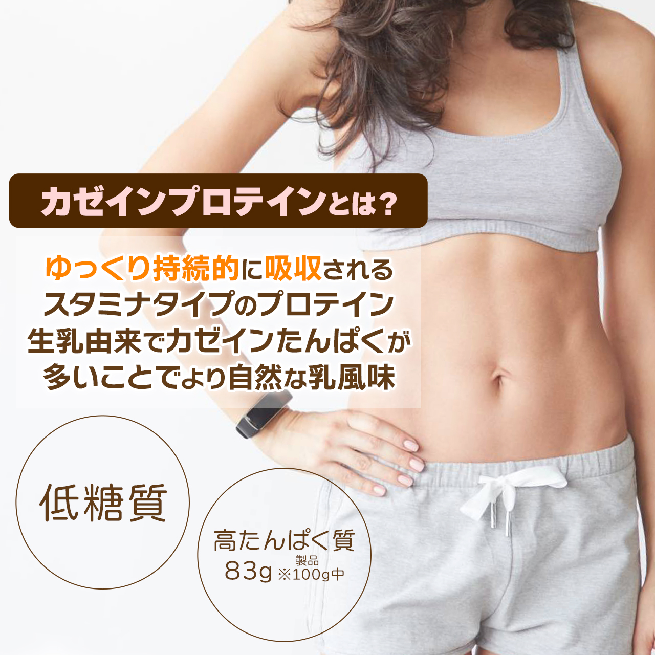 3.ホエイとは異なり、脱脂乳から得られるカゼインタンパク質濃縮物は自然なミルクフレーバーとゆるやかな吸収スピードで、ダイエット時や休息時の栄養補給に最適です。