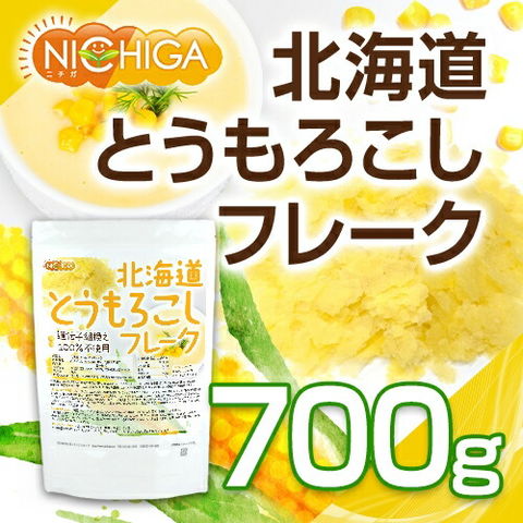 北海道 とうもろこしフレーク 700g 【送料無料(沖縄を除く)】 新鮮なスイートコーン(Non-GMO)使用 保存料不使用・無着色 NICHIGA(ニチガ) TK0