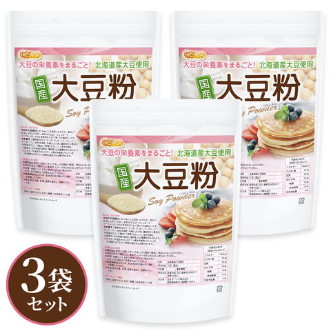 国産 大豆粉 1kg×3袋 【送料無料!(沖縄を除く)】グルテンフリー 北海道産大豆100% 青臭み除去 失活処理 大豆の栄養素まるごと NICHIGA(ニチガ) TKS