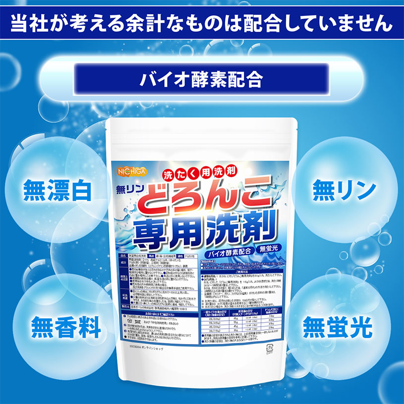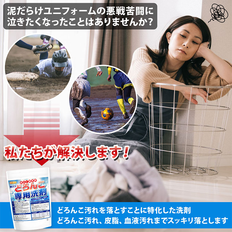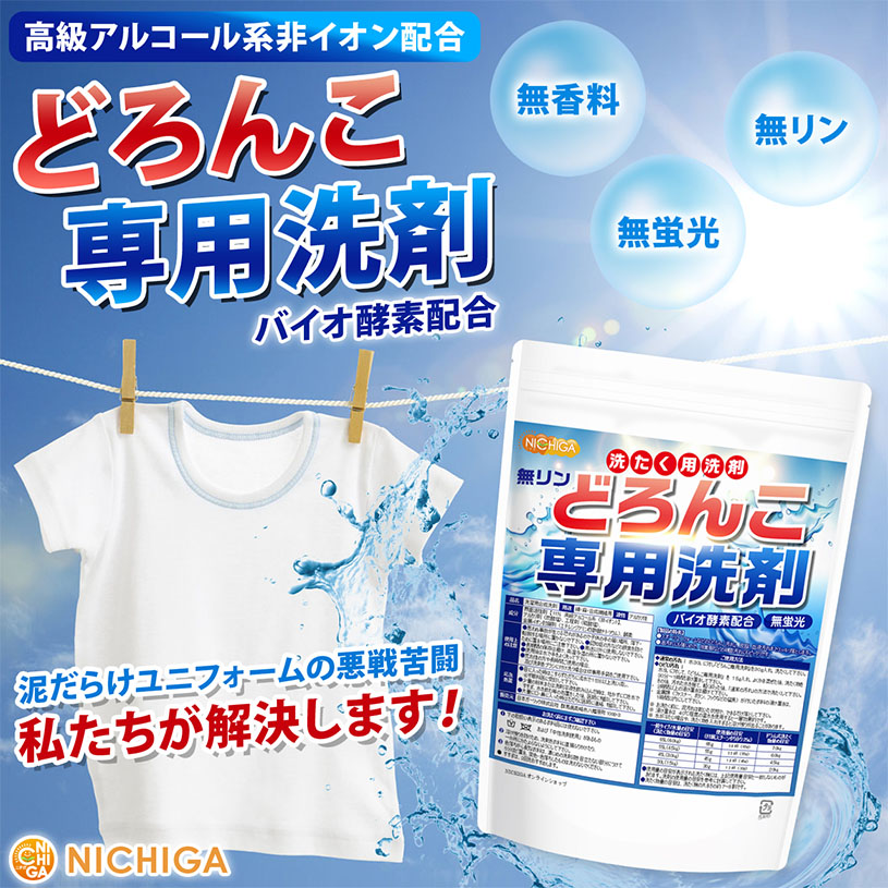 どろんこ専用洗剤(無リン) 1kg 【送料無料】【メール便で郵便ポストにお届け】【代引不可】【時間指定不可】 バイオ酵素配合 高級アルコール系 無香料・漂白剤不使用 スポーツユニフォームなどの頑固汚れにもピッタリ [06] NICHIGA(ニチガ)