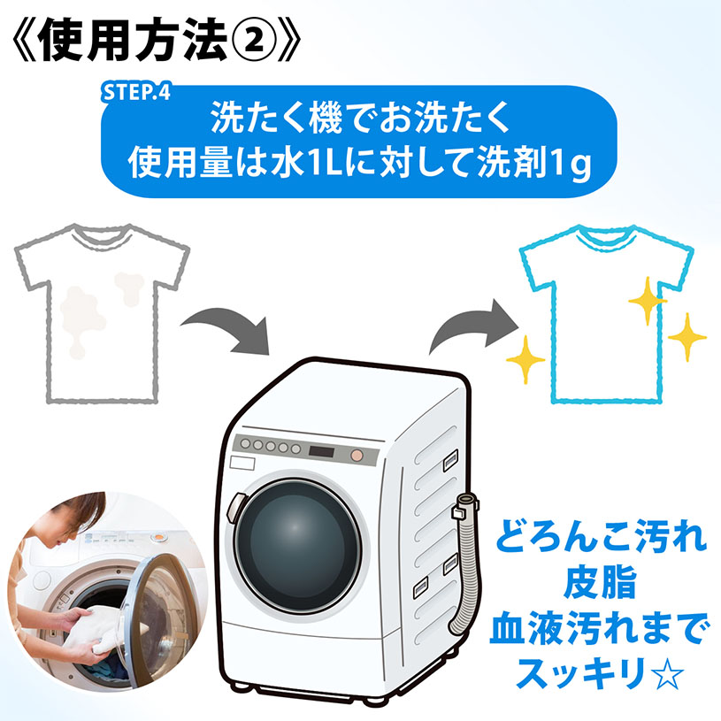 ●スポーツユニフォームなどの「どろんこ汚れ」、皮脂、血液汚れまでスッキリ落とします。
