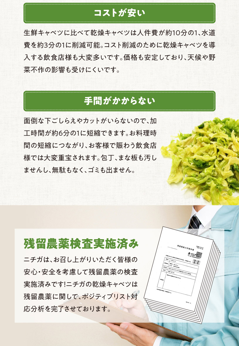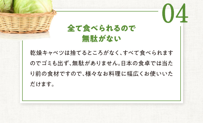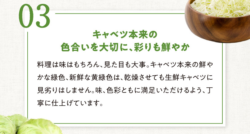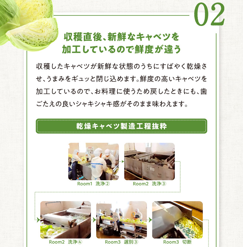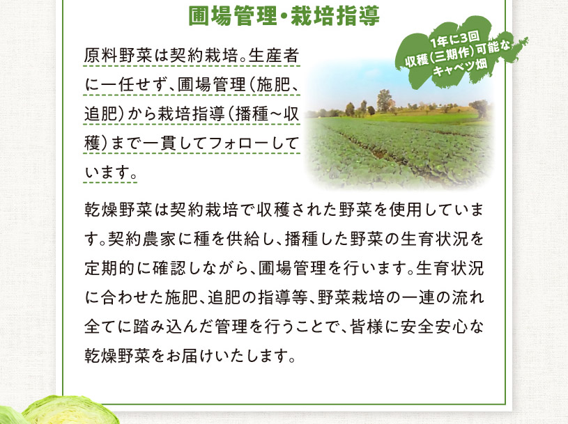 【乾燥キャベツ AD(エアドライ)製法 (契約栽培)】