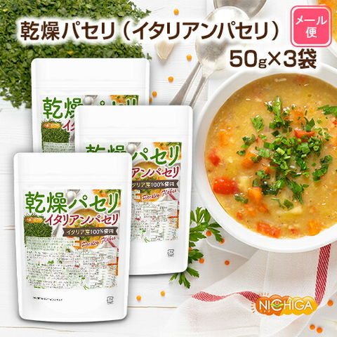 乾燥パセリ(イタリアンパセリ) 50g×3袋 【送料無料】【メール便で郵便ポストにお届け】【代引不可】【時間指定不可】 Parsley Flakes 契約農家で管理イタリア産100%使用 国内選別 [01] NICHIGA(ニチガ)