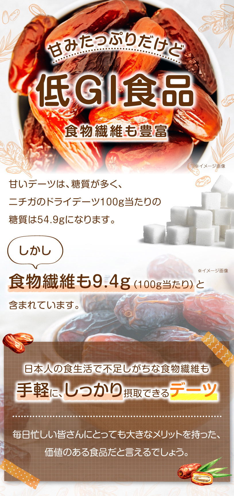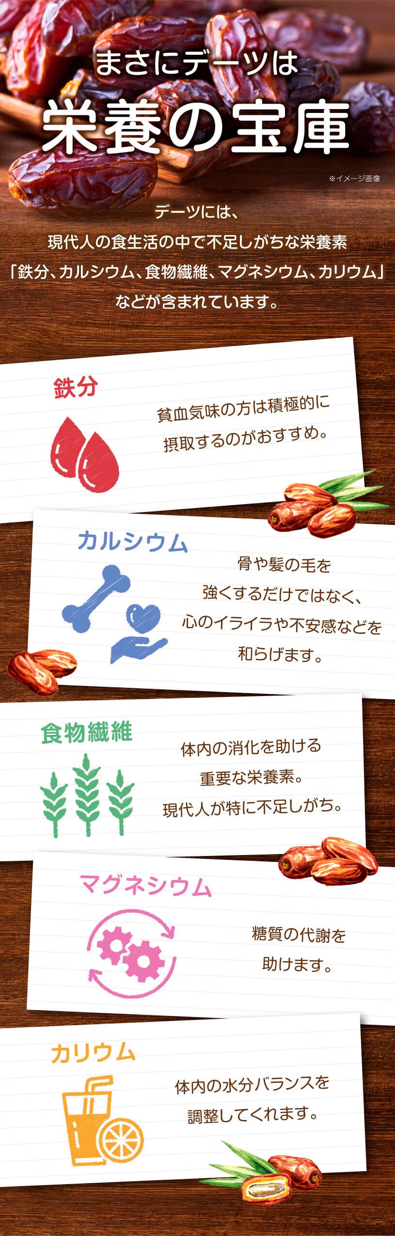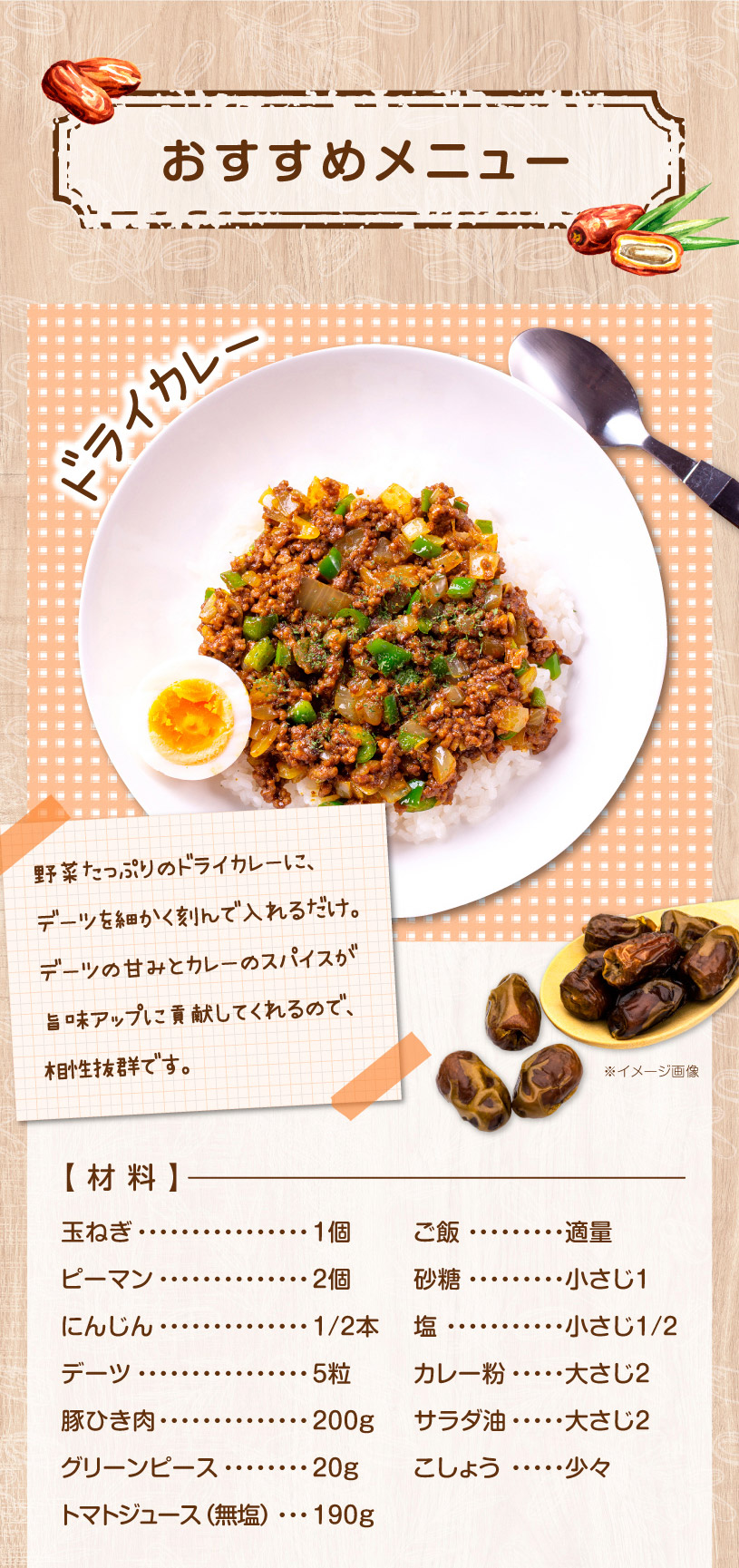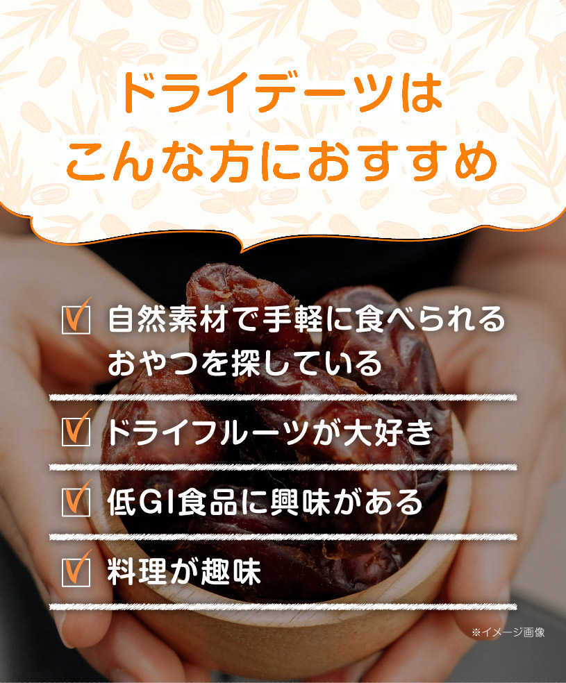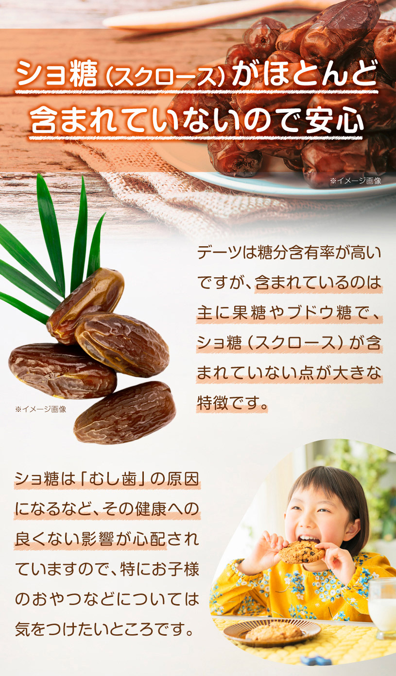 | 原材料名 | 種なしデーツ(サイヤーデーツ)イラン産 |