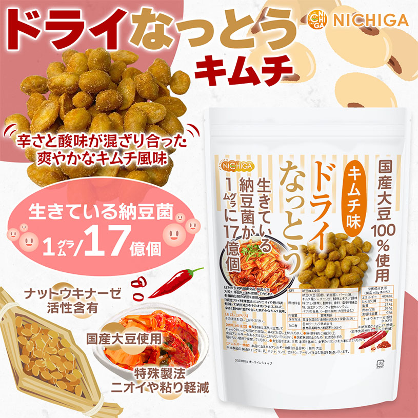 【ドライなっとう<キムチ味> 国産大豆100%使用 DRY NATTO 生きている納豆菌17億個】