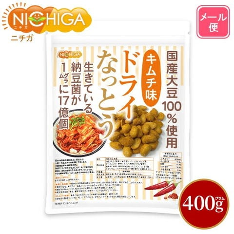 ドライなっとう <キムチ味> 400g 【送料無料】【メール便で郵便ポストにお届け】【代引不可】【時間指定不可】 国産大豆100%使用 DRY NATTO 生きている納豆菌17億個 ナットウキナーゼ活性含有 [05] NICHIGA(ニチガ) 低温フライ特殊製法