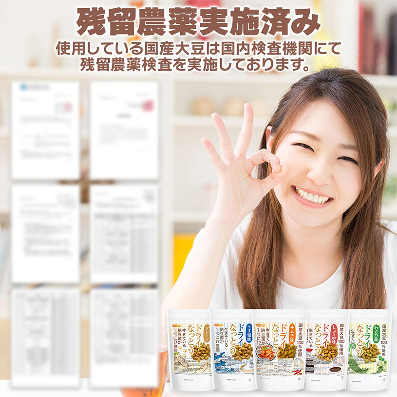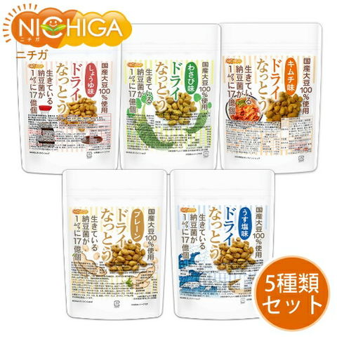 ドライなっとう <味違い5種類セット> 110g×5袋 【送料無料(沖縄を除く)】 国産大豆100%使用 DRY NATTO 生きている納豆菌17億個 ナットウキナーゼ活性含有 [02] NICHIGA(ニチガ) 低温フライ特殊製法