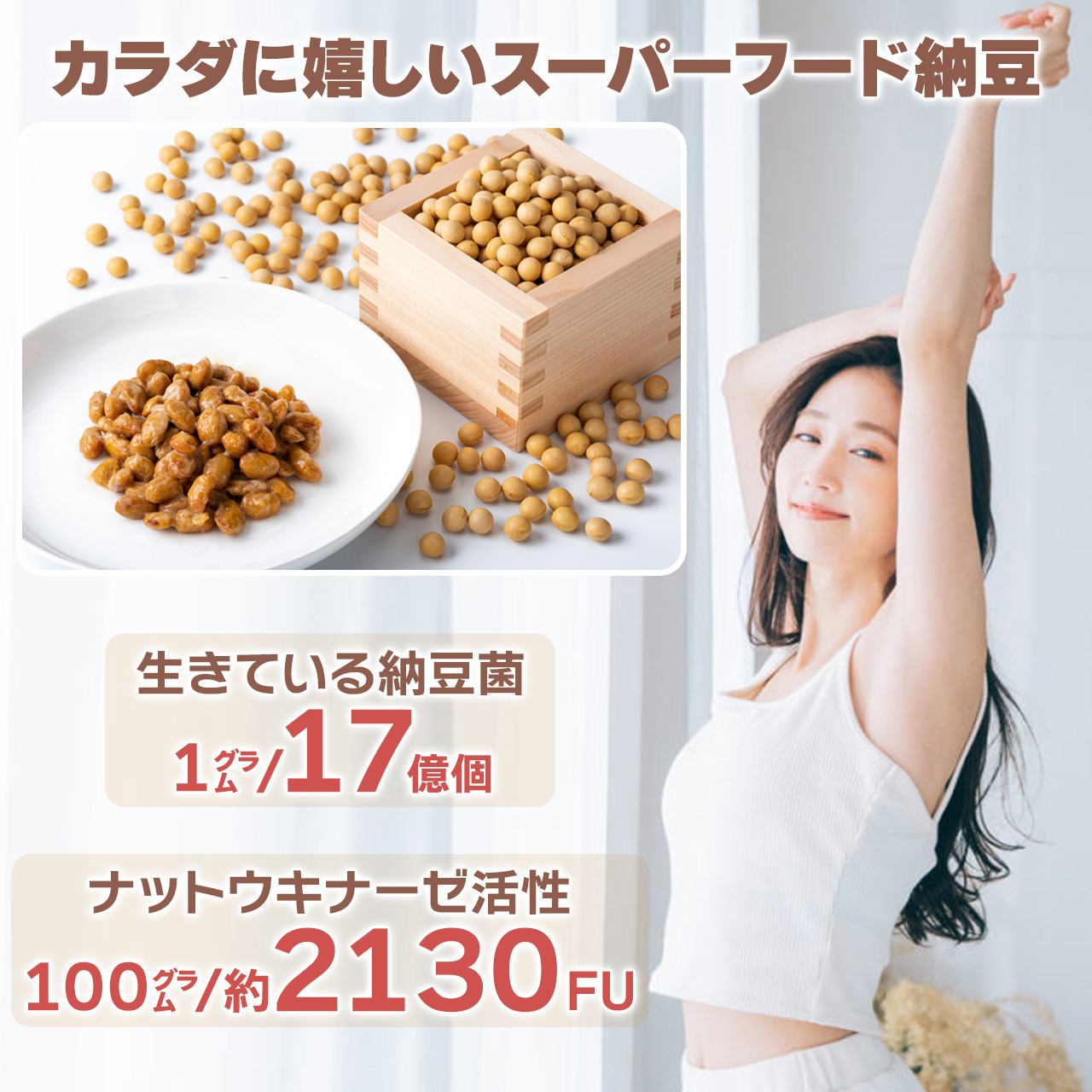 残留農薬検査実施済み・納豆菌が1gに17億個・ナットウキナーゼ活性含有