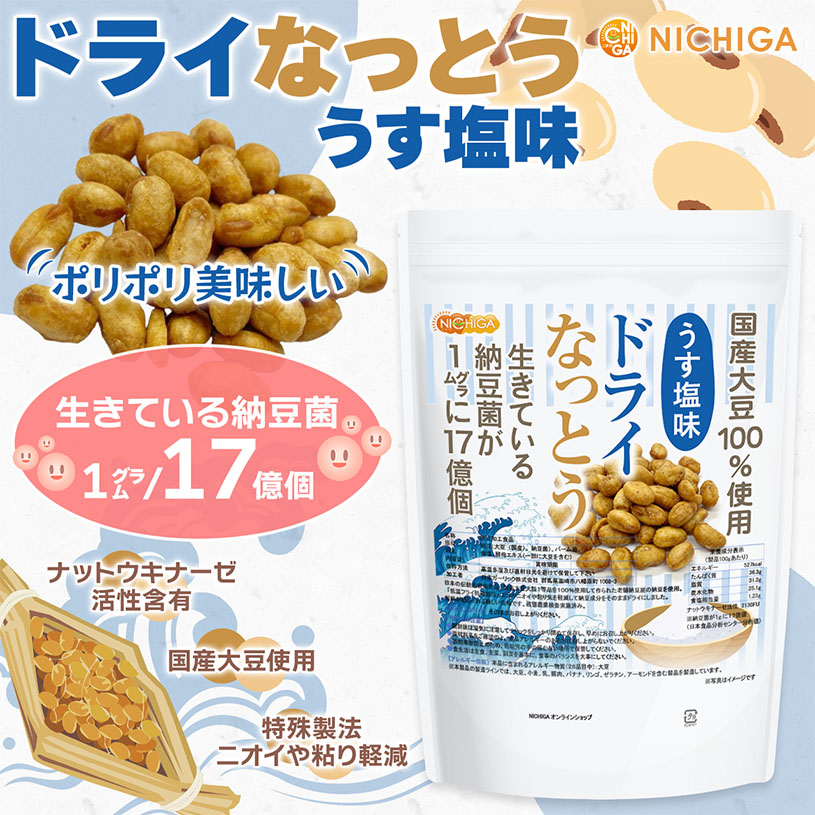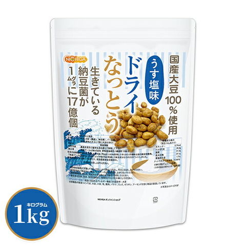 ドライなっとう <うす塩味> 1kg 【送料無料!(沖縄を除く)】 国産大豆100%使用 DRY NATTO 生きている納豆菌17億個 ナットウキナーゼ活性含有 低温フライ特殊製法 NICHIGA(ニチガ) TK0
