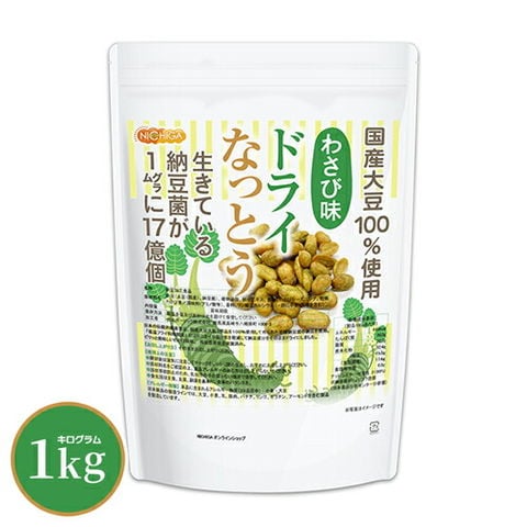 ドライなっとう <わさび味> 1kg 【送料無料!(沖縄を除く)】 国産大豆100%使用 DRY NATTO 生きている納豆菌17億個 ナットウキナーゼ活性含有 低温フライ特殊製法 NICHIGA(ニチガ) TK0