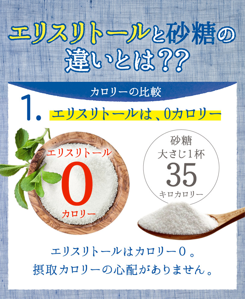 | 原材料名 | エリスリトール(フランス製造)/甘味料(ステビア) |