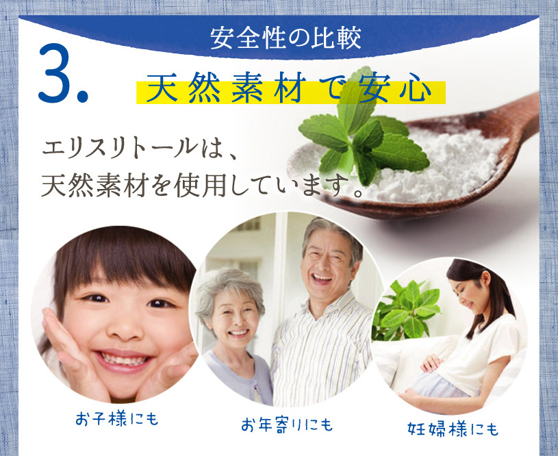 お子様やご高齢の方、合成甘味料を避けたい方など幅広い方に安心してご利用頂けます。