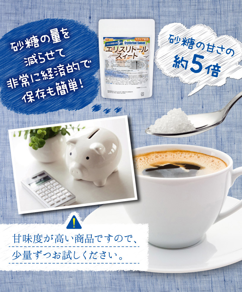 | 商品名 | 【砂糖の甘さ 約5倍】 エリスリトールスイート ステビア配合 |
