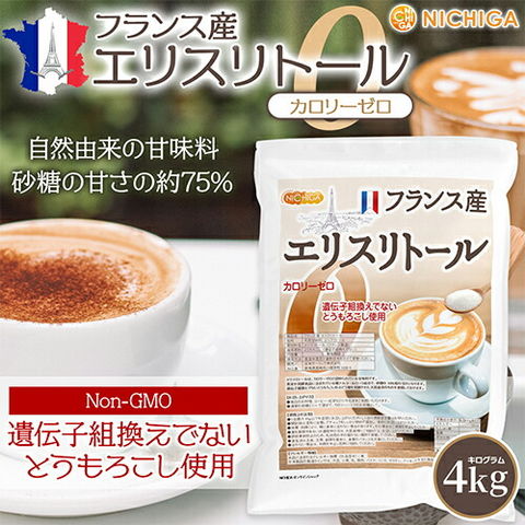フランス産 エリスリトール 4kg【送料無料!(沖縄を除く)】 カロリーゼロ 遺伝子組換えでない とうもろこし使用 天然由来 希少糖 糖質制限 NICHIGA(ニチガ) TK1