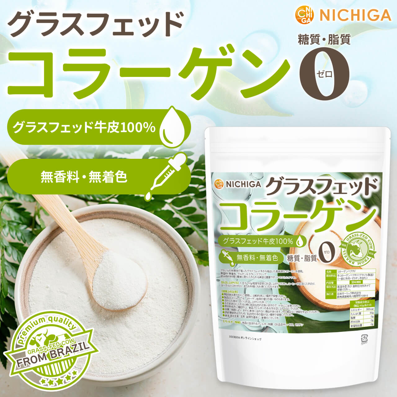| 原材料名 | 牛コラーゲンペプチド(ブラジル製造)(一部に牛肉・ゼラチンを含む) |