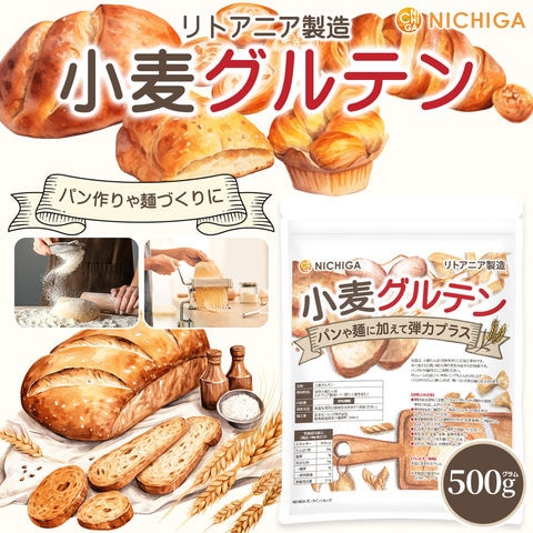小麦グルテン(リトアニア製造) 500g 【送料無料】【メール便で郵便ポストにお届け】【代引不可】【時間指定不可】 活性小麦たん白 パン 麺づくりに 製菓 [05] NICHIGA(ニチガ)