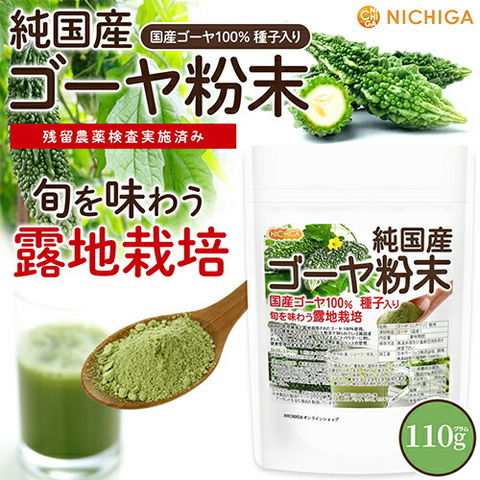 純国産 ゴーヤ 粉末 110g 【送料無料】【メール便で郵便ポストにお届け】【代引不可】【時間指定不可】 種子入りまるごと100% 露地栽培 残留農薬検査実施済 ニガウリ [04] NICHIGA(ニチガ) 国産ゴーヤパウダー