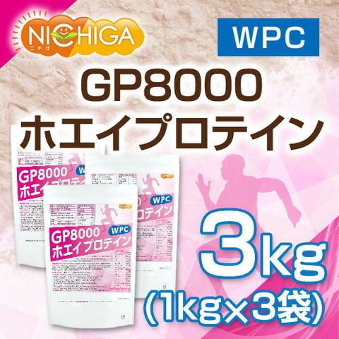 GP8000 ホエイプロテイン 1kg×3袋 【送料無料!(沖縄を除く)】 無添加 ナチュラル NICHIGA(ニチガ) TKS