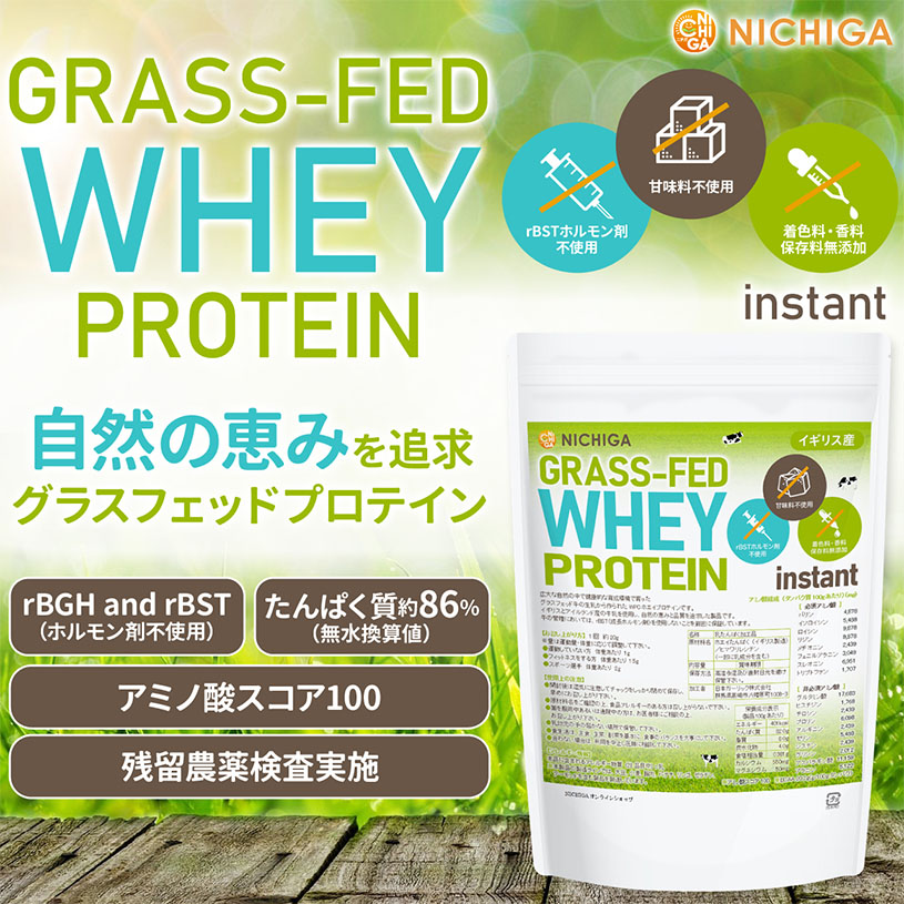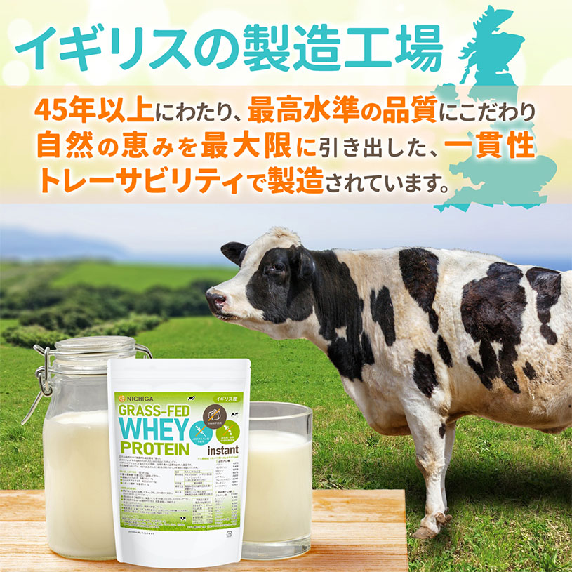 【GRASS-FED WHEY PROTEIN instant(イギリス産) rBSTホルモン剤不使用 甘味料不使用 着色料・香料・保存料無添加】
