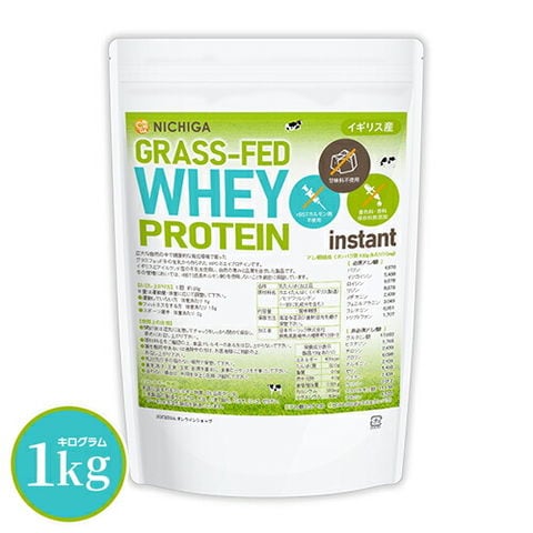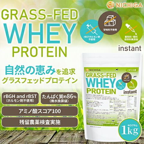 GRASS-FED WHEY PROTEIN instant(イギリス産) 1kg 【送料無料!(沖縄を除く)】rBSTホルモン剤不使用 甘味料不使用 着色料・香料・保存料無添加 WPC 自然の恵み NICHIGA(ニチガ) TK0