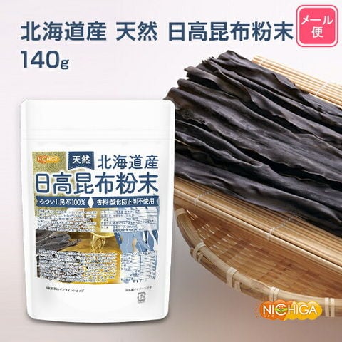 北海道産 天然 日高昆布粉末 140g 【送料無料】【メール便で郵便ポストにお届け】【代引不可】【時間指定不可】 みついし昆布100% 香料・酸化防止剤不使用 天然調味料 昆布パウダー 昆布粉末 こんぶ だし [04] NICHIGA(ニチガ) 旨味があり素材を引き立て甘味があります