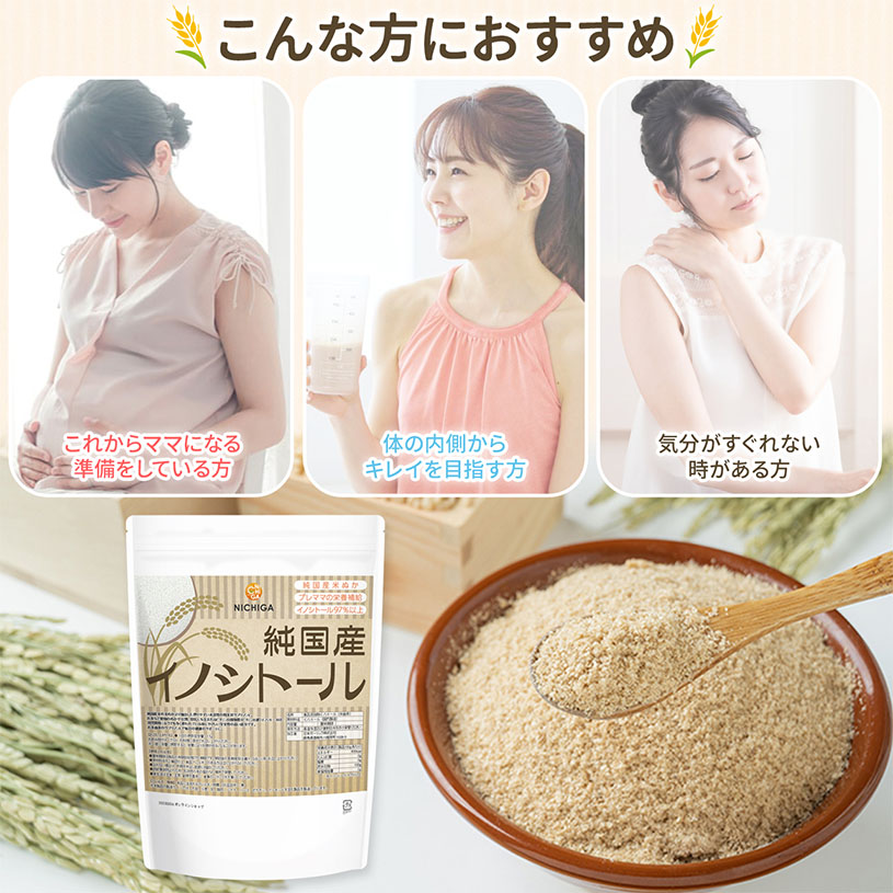 純国産 イノシトール パウダー 150g×3袋 【送料無料】【メール便で郵便ポストにお届け】【代引不可】【時間指定不可】 純国産米ぬか由来 プレママの栄養補給 [06] NICHIGA(ニチガ) 妊活 赤ちゃん ビタミンB