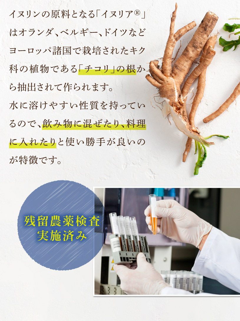 | 原材料名 | イヌリン(水溶性食物繊維) |