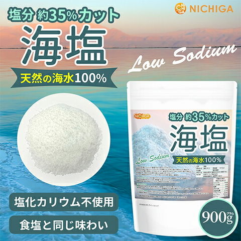 塩分 約35%カット 海塩 900g 【送料無料】【メール便で郵便ポストにお届け】【代引不可】【時間指定不可】 天然の海水100% ミネラル豊富 塩化カリウム不使用 low sodium [05] NICHIGA(ニチガ)