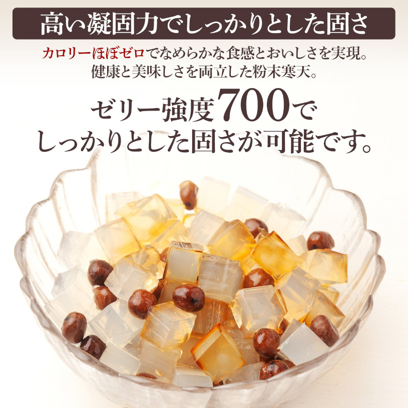 ゼリー強度は700で、高い凝固力の製品でしっかとした固さを出すことができます。