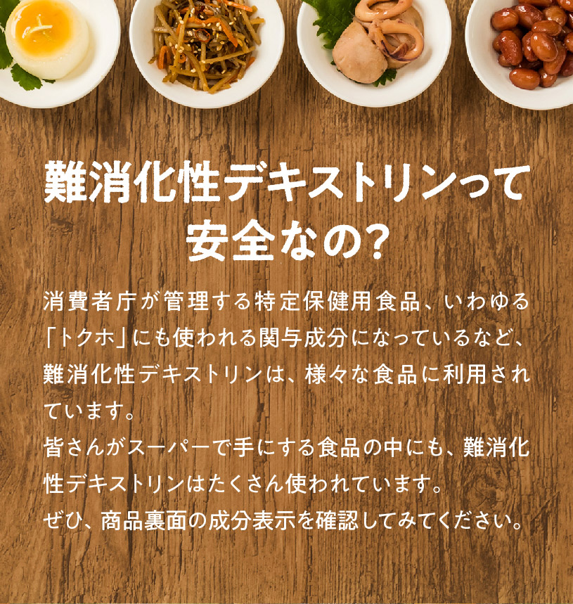 | 原材料名 | 還元難消化性デキストリン(遺伝子組替え原料不使用) |