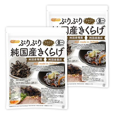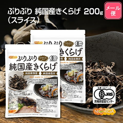 ぷりぷり 有機JAS 乾燥 純国産きくらげ <スライス> 100g×2袋 【送料無料】【メール便で郵便ポストにお届け】【代引不可】【時間指定不可】 完全無農薬栽培 純国産種菌 純国産菌床 [06] NICHIGA(ニチガ)