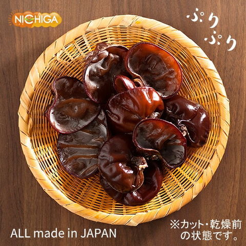 山口県瀬戸内の穏やかな海のそばで汐風と水で育てた純国産きくらげは、色が良く、ぷりぷりの良質肉厚、手作業にて石突のカットが丁寧、品質管理にもこだわっております。