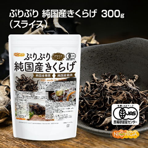 ぷりぷり 有機JAS 乾燥 純国産きくらげ <スライス> 300g 【送料無料(沖縄除く)】 完全無農薬栽培 純国産種菌 純国産菌床 NICHIGA(ニチガ) TK0