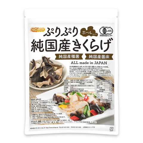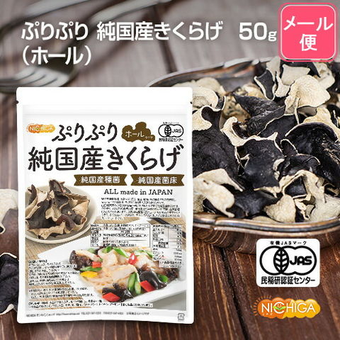 ぷりぷり 有機JAS 乾燥 純国産きくらげ <ホール> 50g 【送料無料】【メール便で郵便ポストにお届け】【代引不可】【時間指定不可】 完全無農薬栽培 純国産種菌 純国産菌床 [06] NICHIGA(ニチガ)
