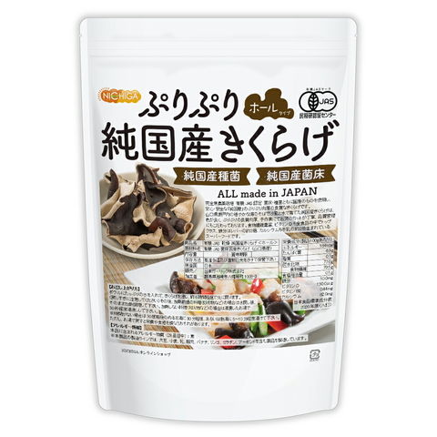 ぷりぷり 有機JAS 乾燥 純国産きくらげ <ホール> 180g【送料無料(沖縄を除く)】 完全無農薬栽培 純国産種菌 純国産菌床 NICHIGA(ニチガ) TK0