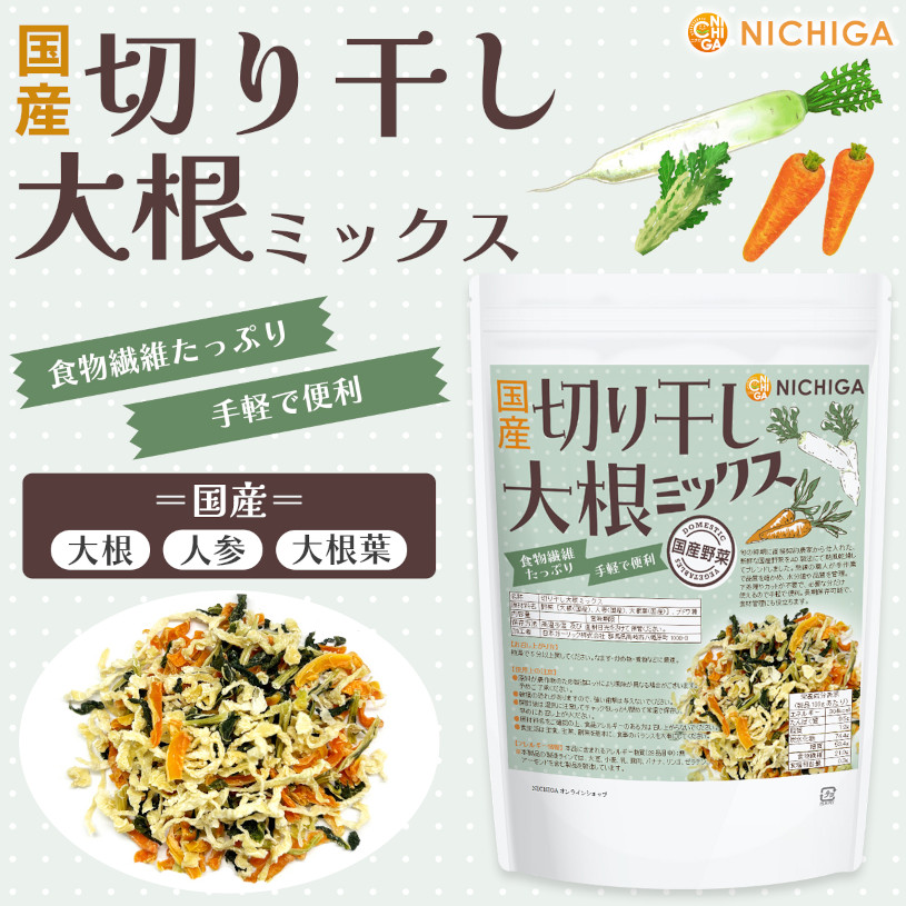 国産 切り干し大根ミックス 70g 【送料無料】【メール便で郵便ポストにお届け】【代引不可】【時間指定不可】食物繊維たっぷり [大根 人参 大根葉]手軽で便利 契約農家栽培 災害時常備菜に [05] NICHIGA(ニチガ)