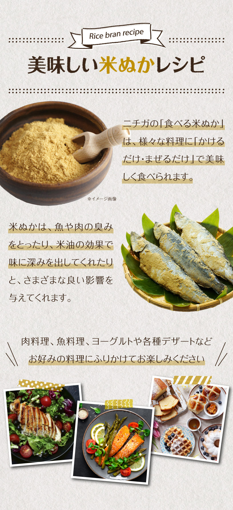 国産 食べる米ぬか 150g 【送料無料】【メール便で郵便ポストにお届け】【代引不可】【時間指定不可】 <特殊精製>米油も丸ごと精製 食物繊維豊富 [05] NICHIGA(ニチガ)