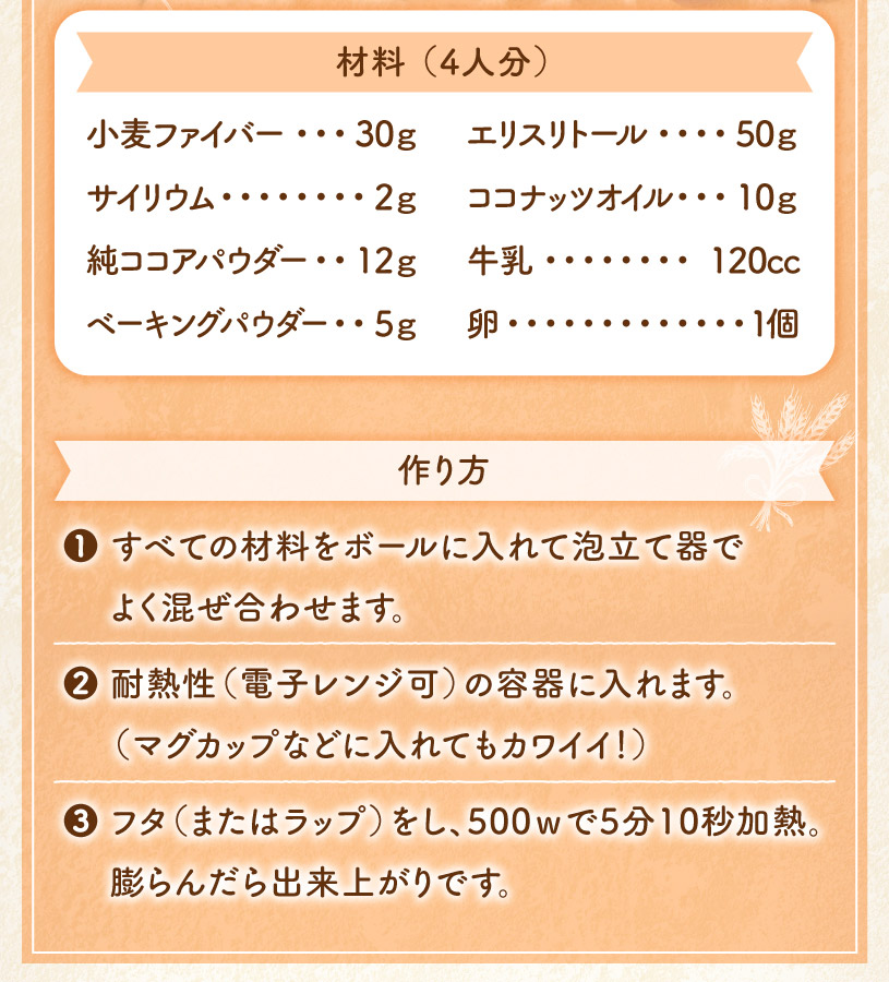 | 原材料名 | 小麦ファイバー(ハンガリー製造)(一部に小麦を含む) |